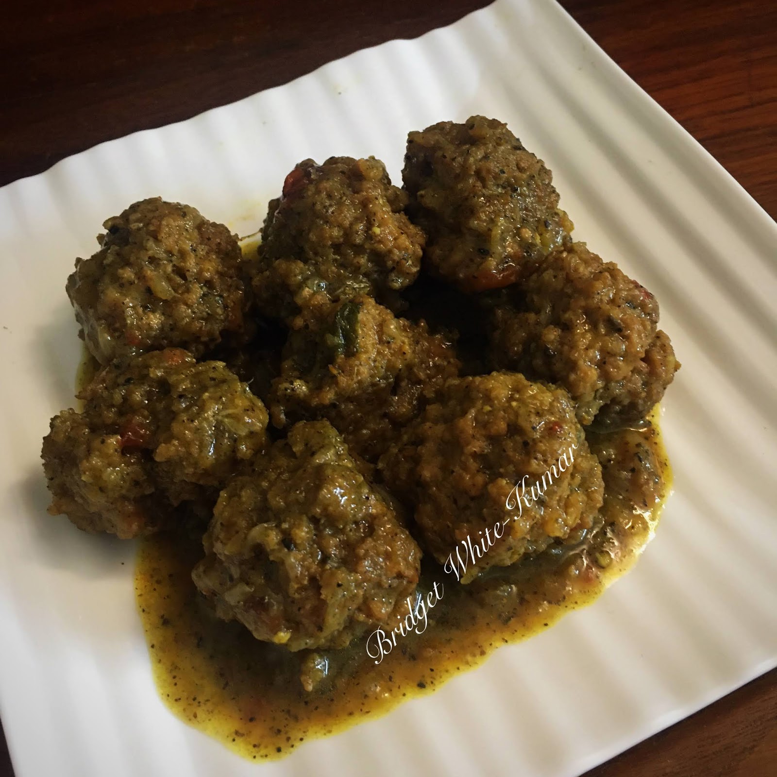 Add 2 cups of water and mix well. Bring to boil. When the gravy is boiling well, reduce heat and drop in the meat balls one by one.